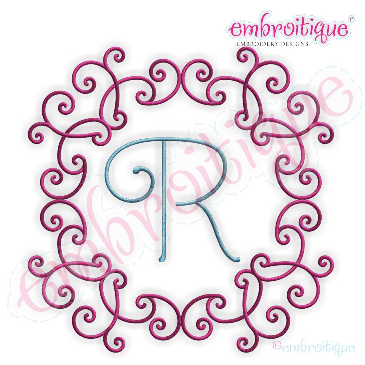 Romance Fancy Framed Monogram Initial Alphabet Font for Machine Embroidery