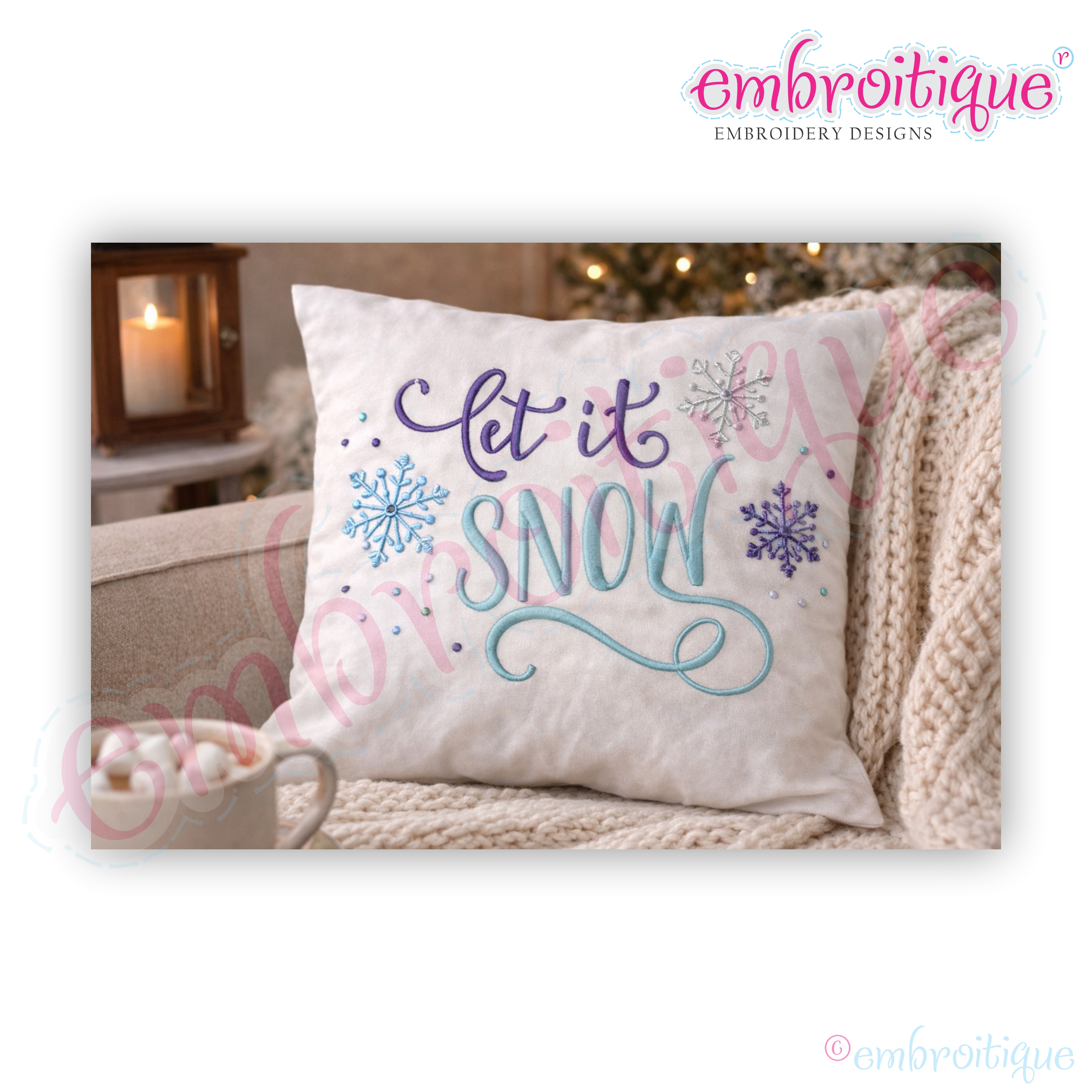 Let It Snow - Snowflakes - Winter Christmas Holiday Design - Machine Embroidery File