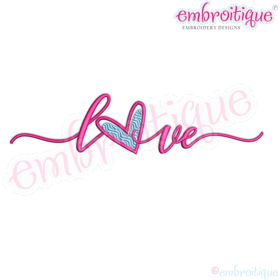 Love Script with offset heart fill stitch Machine embroidery design wedding anniversary