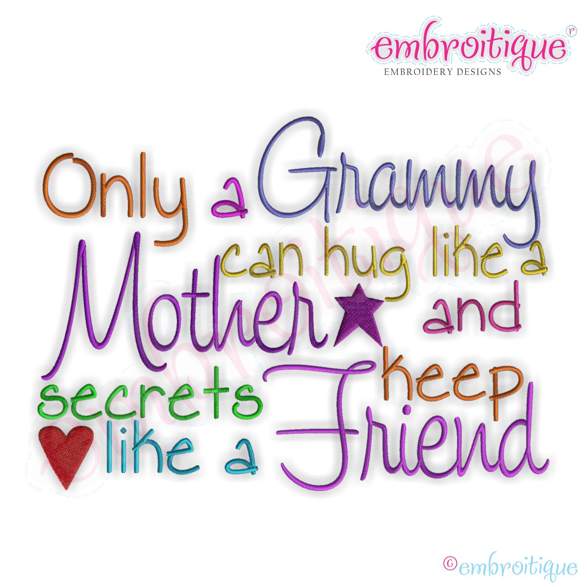 Only a Grammy Can Hug Like a Mother Embroidery Design