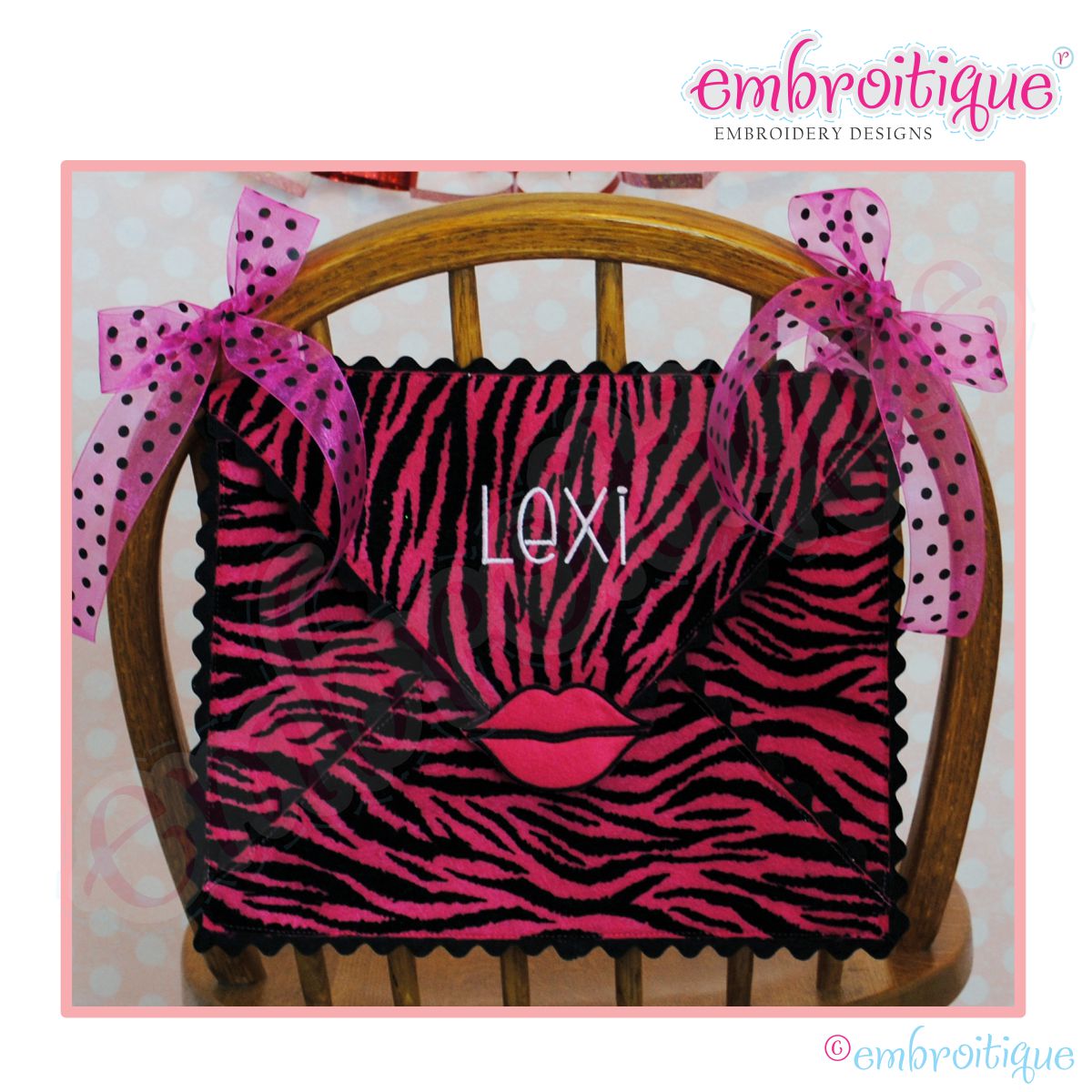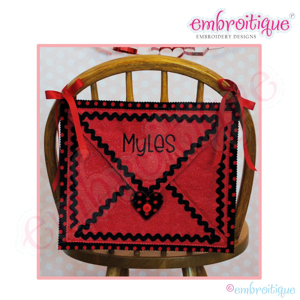 Posh and Proper - Envelope Valentine Chair Backer Bags - PDF Sewing & Embroidery Pattern - Includes Heart, Lips, Font