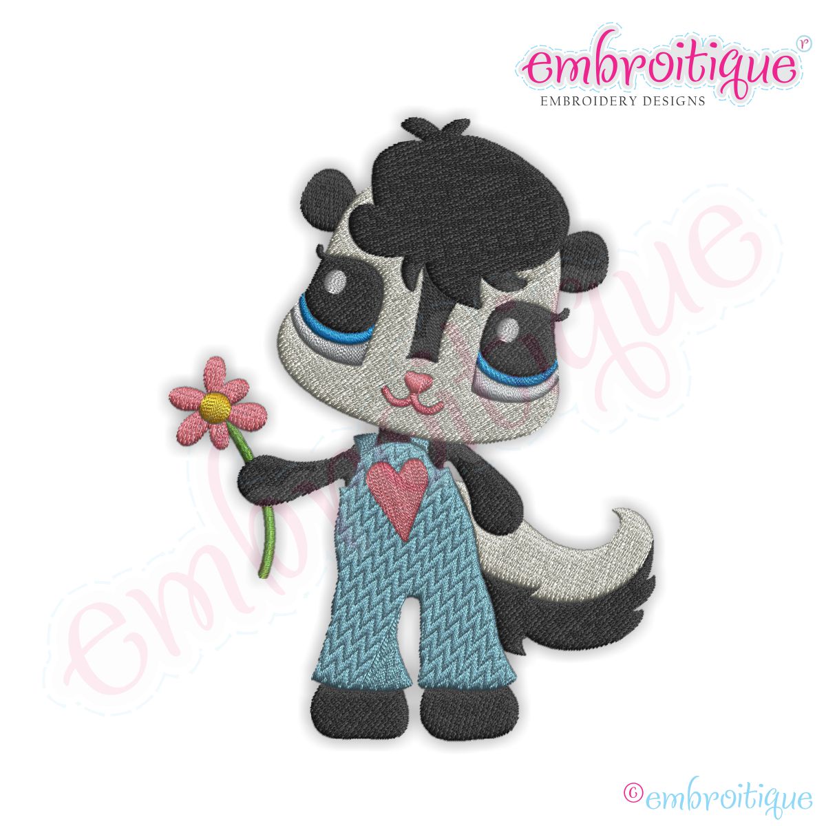 Skunk with a Flower Filled Embroidery Design
