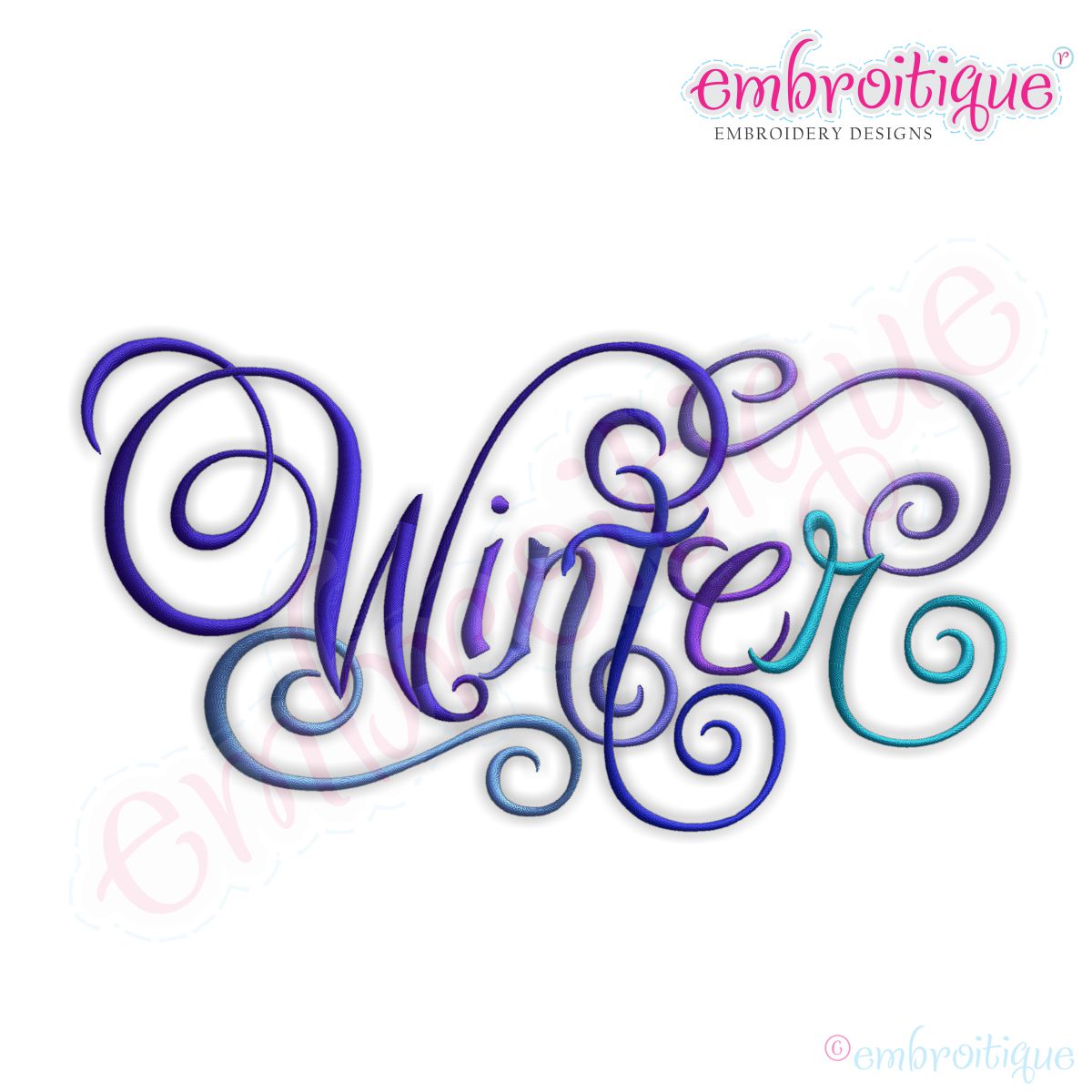 Winter Calligraphy Script Embroidery Design - Large