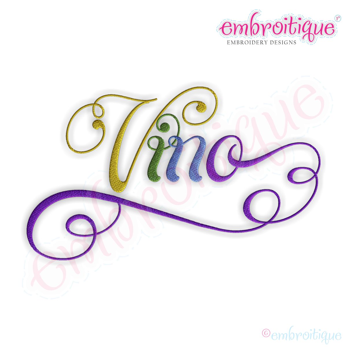 Vino Script 5 Embroidery Design
